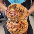 Extra Large flour tortilla, plant-based protein of choice, beans (whole or refried) rice, pico de gallo, cabbage, chipotle crema, special green salsa. Plant-Based Protein Al Pastor | Asada |…