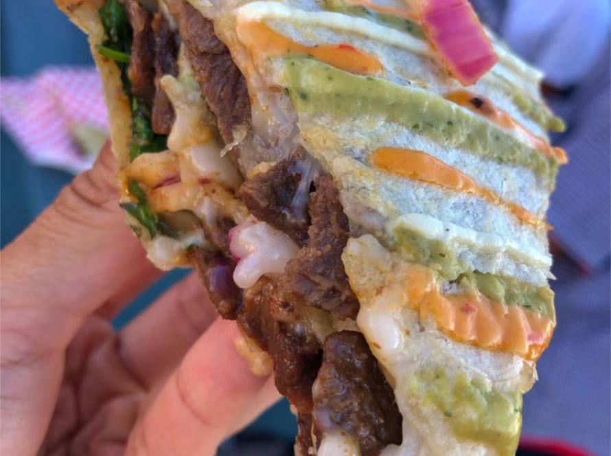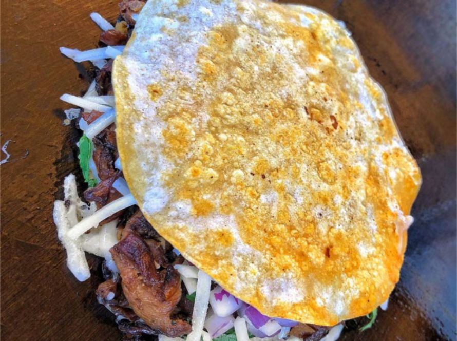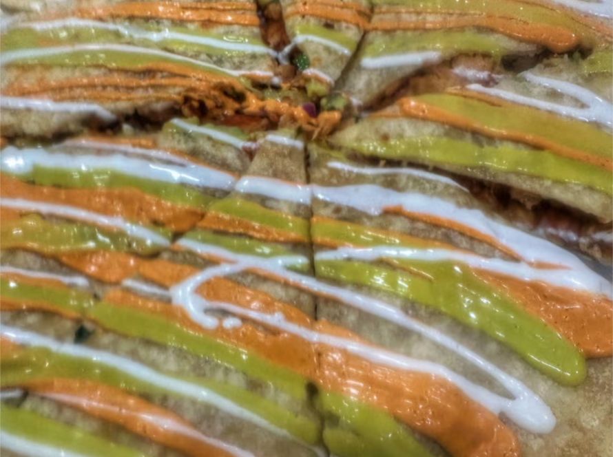 A warm flour tortilla filled with vegan cheese, plant-based meat of choice, onions, and cilantro. The quesadilla is grilled to perfection, resulting in a crispy exterior and a melty…
